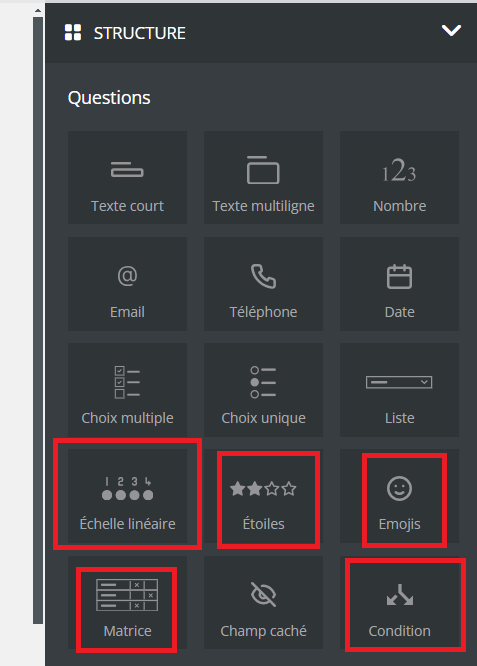 Ils permettent au répondant de sélectionner un pictogramme correspondant à leur ressenti, pour rendre l’enquête plus divertissante par exemple.