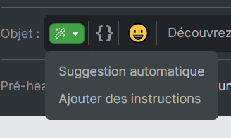 2. En sélectionnant “Ajouter des instructions”, objet et pré-header sont générés simultanément, sans nécessiter que votre email soit déjà rédigé.