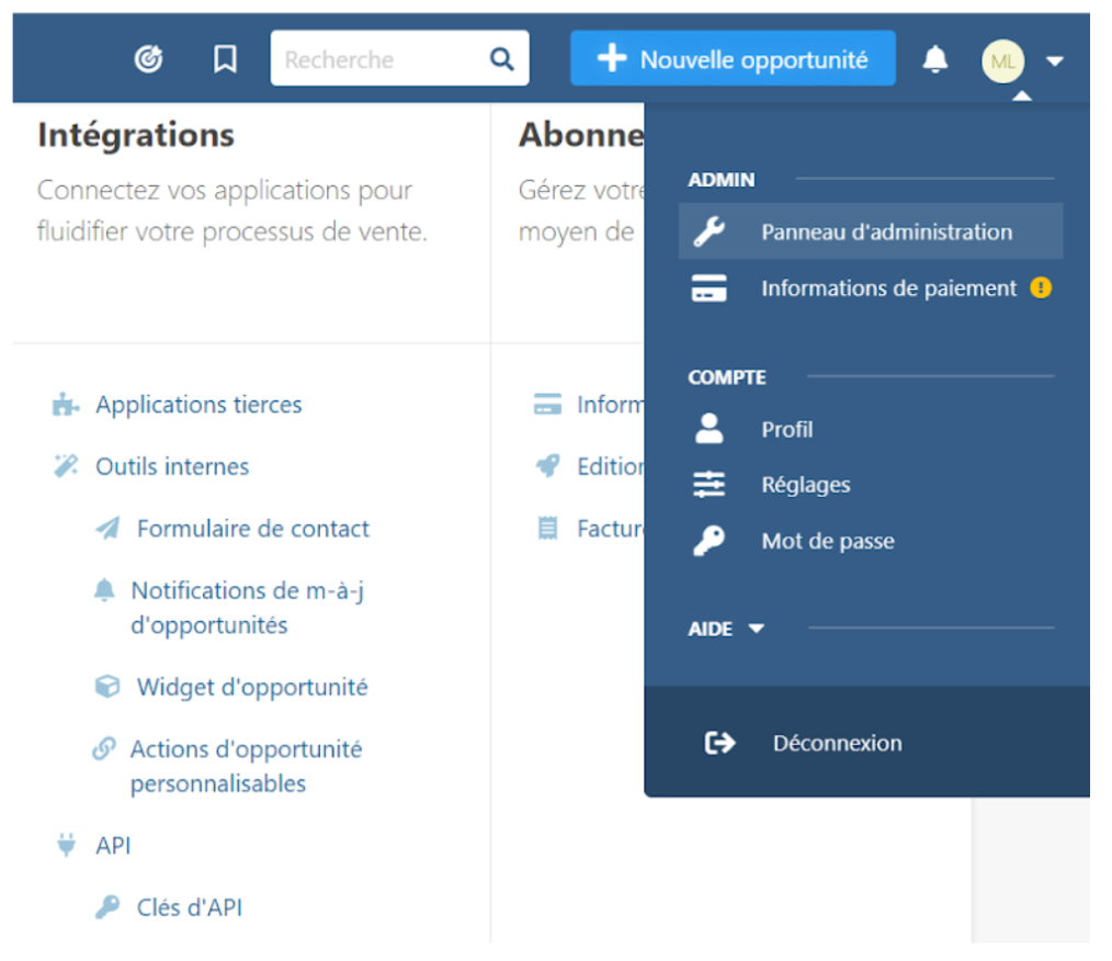 Connectez-vous préalablement à votre compte noCRM, puis :