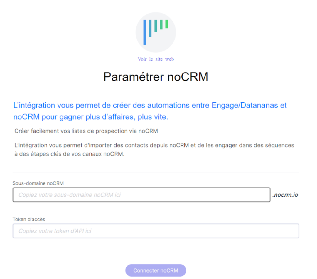 Validez ensuite pour que le lien entre noCRM Sarbacane Engage puisse s’établir.