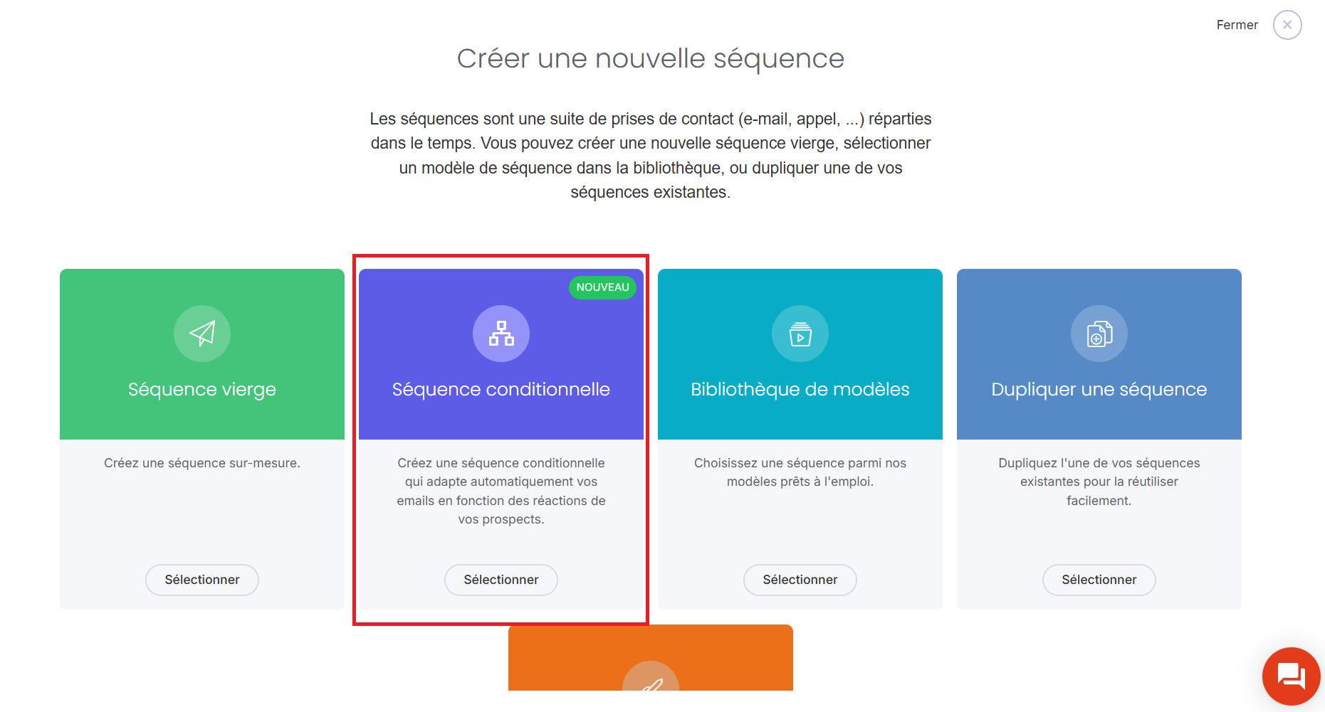 Plusieurs blocs s’affichent, il suffit d’opter pour Séquence conditionnelle.