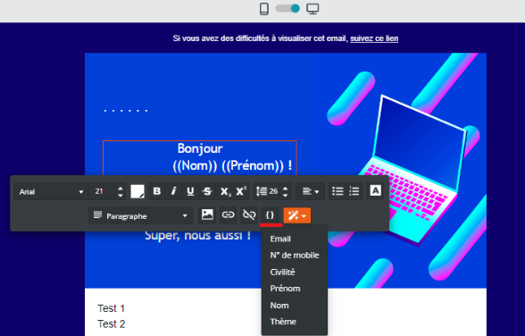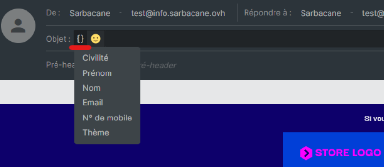 La personnalisation ne sera possible que si vous avez des informations sur vos destinataires dans votre liste de contacts : prénom, nom, civilité ou toute autre information.
