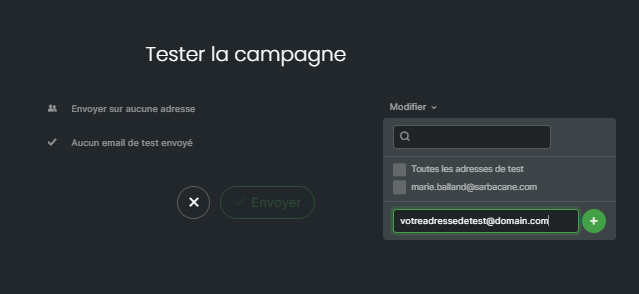 Une fois les adresses emails de tests sélectionnées, cliquez sur le bouton “Envoyer”