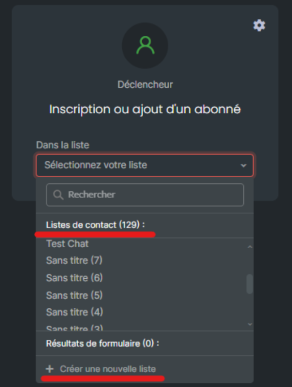 La première étape consiste à sélectionner votre liste de contacts qui servira de déclencheur :