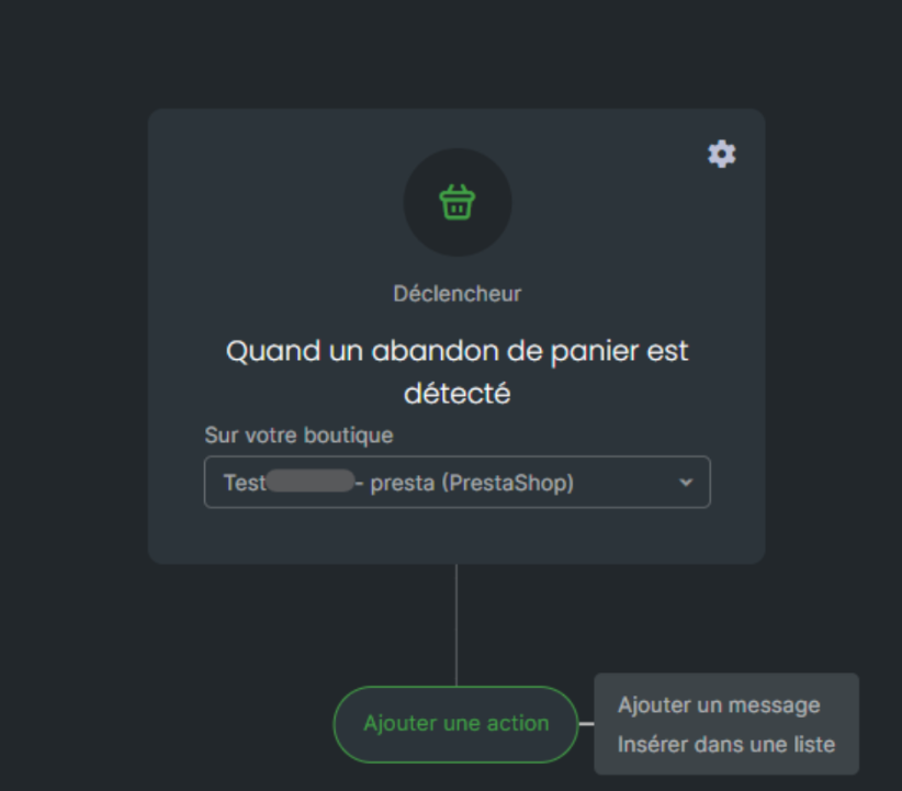 C'est un scénario que vous pouvez mettre en place seulement si vous avez au préalable connecté une de vos boutiques dans la partie “Contacts” de votre compte, puis “Connecteurs”.