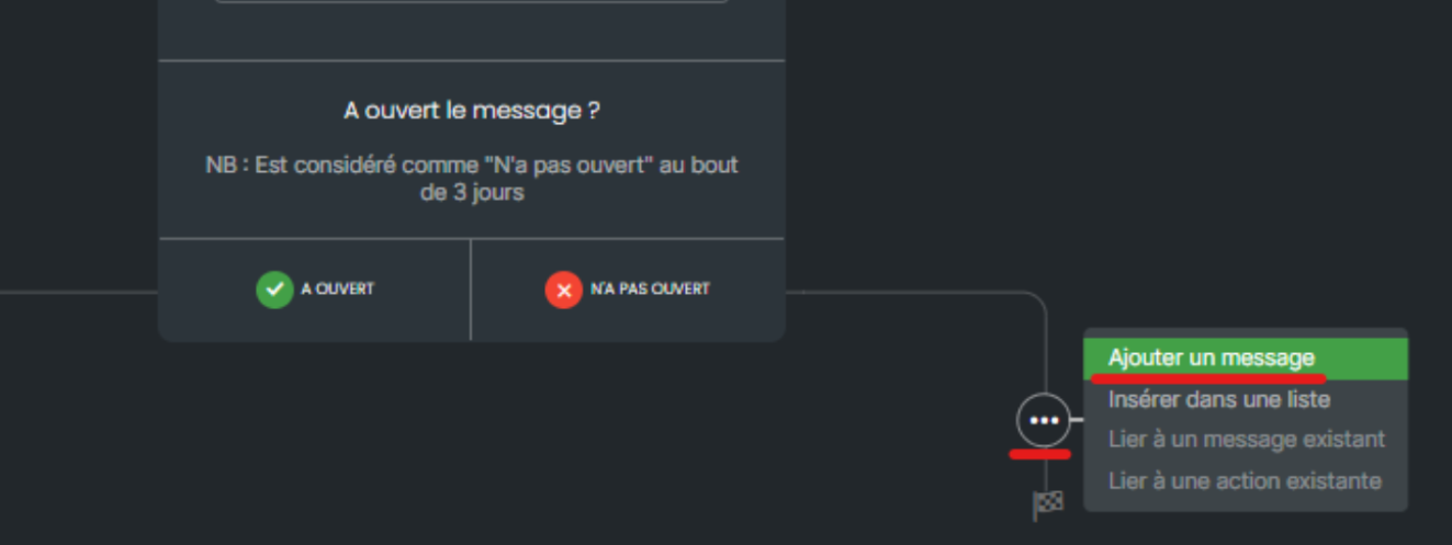 En fonction du comportement attendu sur votre première communication, vous pourrez, par exemple, ajouter un message de relance aux personnes n’ayant pas ouvert votre campagne 3 jours après son envoi.