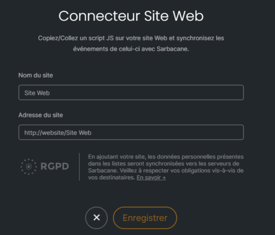 Attention, afin de mettre en place ce scénario, il est primordial au préalable de créer votre script. Pour cela, rendez-vous dans la partie “Contacts” de votre compte puis ”Connecteurs” et enfin ”Connecteur Site Web”.