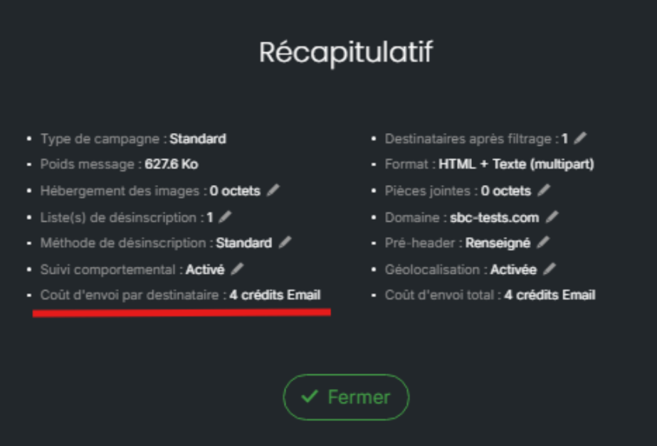 Dans certains cas, il est possible qu’au moment de l’envoi, ce coût soit supérieur au nombre de destinataires que vous avez importé.