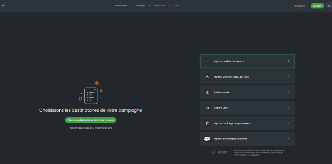 Avant de lancer votre campagne, commencez par importer votre fichier de contacts.