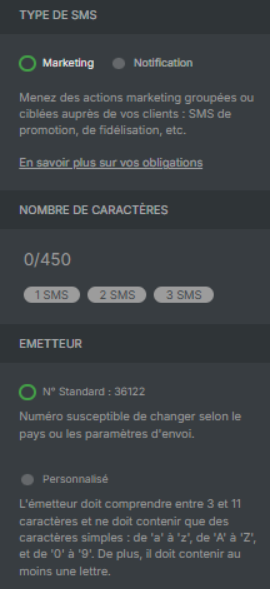 Lors de la création de votre campagne SMS, vous devez choisir entre 2 types de messages :