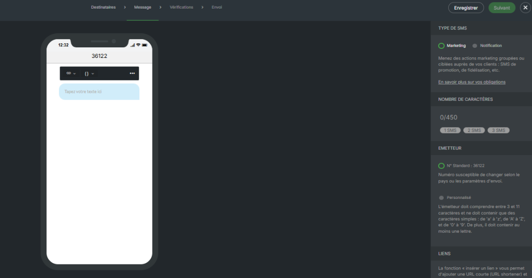 Attention, vos contacts ne pourront pas répondre à votre message. Pour les campagnes marketing, notez que la mention STOP SMS ajoute 11 caractères à votre message.
