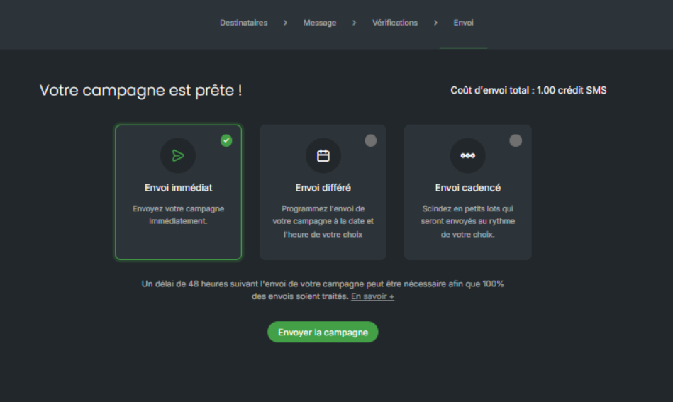 L’option de cadencement permet d’envoyer votre SMS par petits lots, afin d’optimiser le taux de réception.