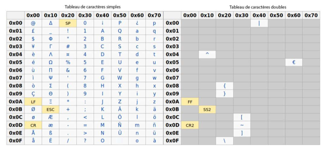 Les caractères directement pris en charge incluent :