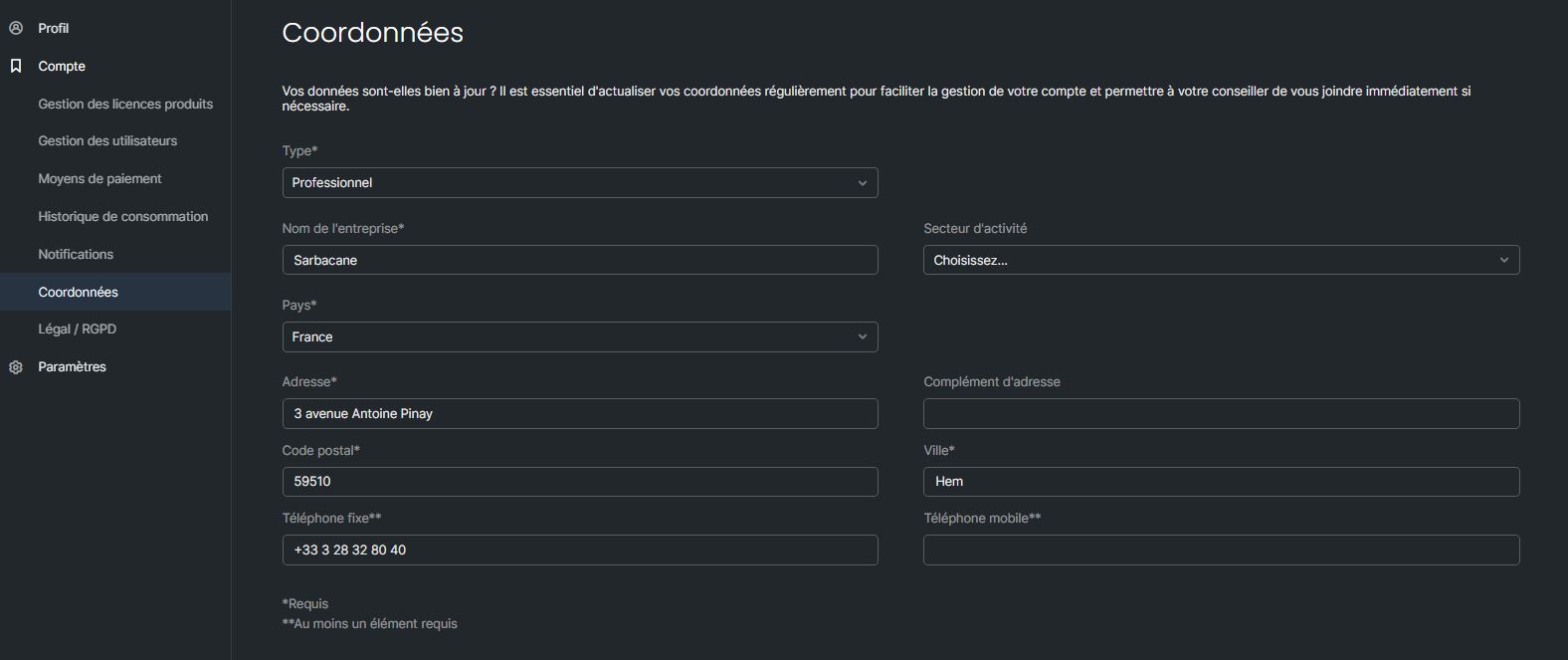 Cette section vous permet de mettre à jour vos coordonnées pour faciliter la gestion de votre compte et permettre à votre conseiller de vous joindre facilement si nécessaire.
