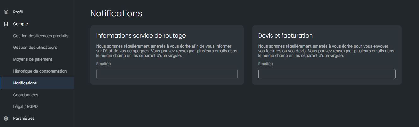 Une adresse email destinée à recevoir les informations liées au routage des campagnes de votre compte