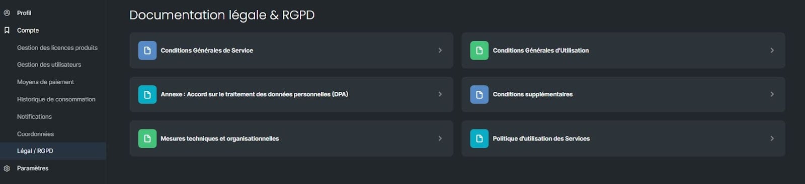Vous pourrez consulter ici les documents légaux, juridiques liés à votre utilisation de Sarbacane, avec par exemple :
