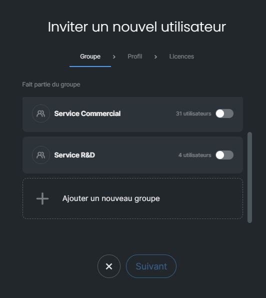 En cliquant sur “Inviter”, vous pourrez inviter un nouvel utilisateur à rejoindre votre compte.