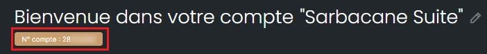 Sous la phrase de bienvenue, vous trouverez votre numéro de compte Sarbacane.