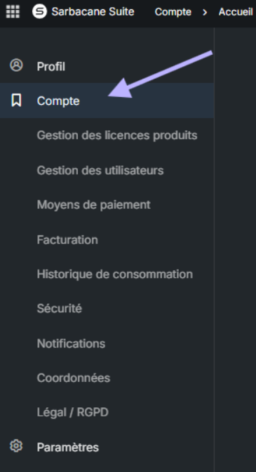 Dans la colonne de gauche, cliquez sur l’onglet « Compte ».